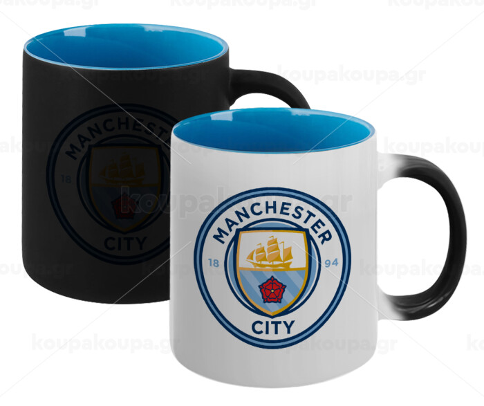 Manchester City FC , Κούπα Μαγική εσωτερικό μπλε, κεραμική 330ml που αλλάζει χρώμα με το ζεστό ρόφημα
