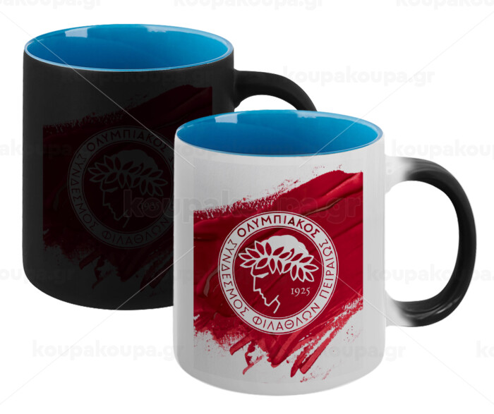 Olympiacos F.C., Κούπα Μαγική εσωτερικό μπλε, κεραμική 330ml που αλλάζει χρώμα με το ζεστό ρόφημα
