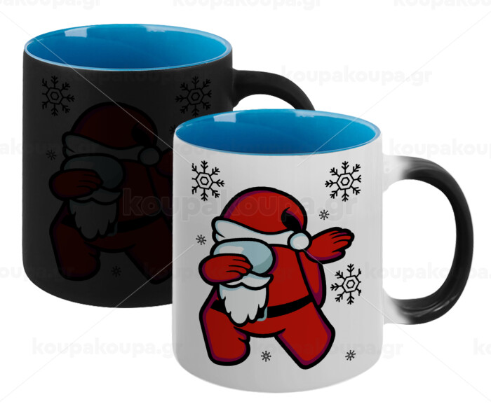 Among US Xmas, Κούπα Μαγική εσωτερικό μπλε, κεραμική 330ml που αλλάζει χρώμα με το ζεστό ρόφημα