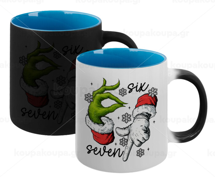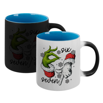 Christmas Meme SIX SEVEN (67), Κούπα Μαγική εσωτερικό μπλε, κεραμική 330ml που αλλάζει χρώμα με το ζεστό ρόφημα