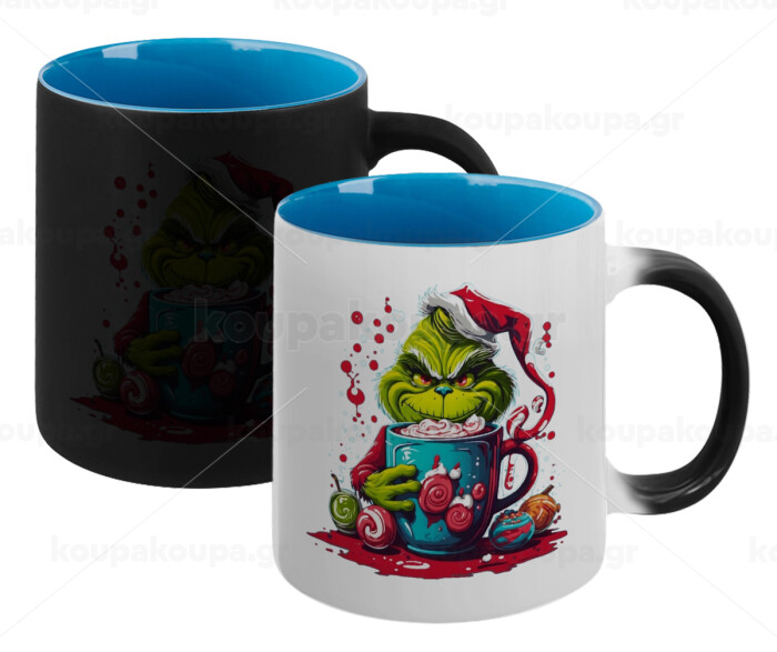 Giggling Grinchy Galore, Κούπα Μαγική εσωτερικό μπλε, κεραμική 330ml που αλλάζει χρώμα με το ζεστό ρόφημα