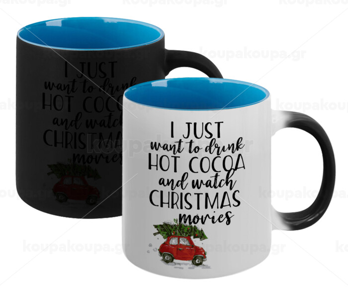 I just want to drink hot cocoa and watch christmas movies mini cooper, Κούπα Μαγική εσωτερικό μπλε, κεραμική 330ml που αλλάζει χρώμα με το ζεστό ρόφημα