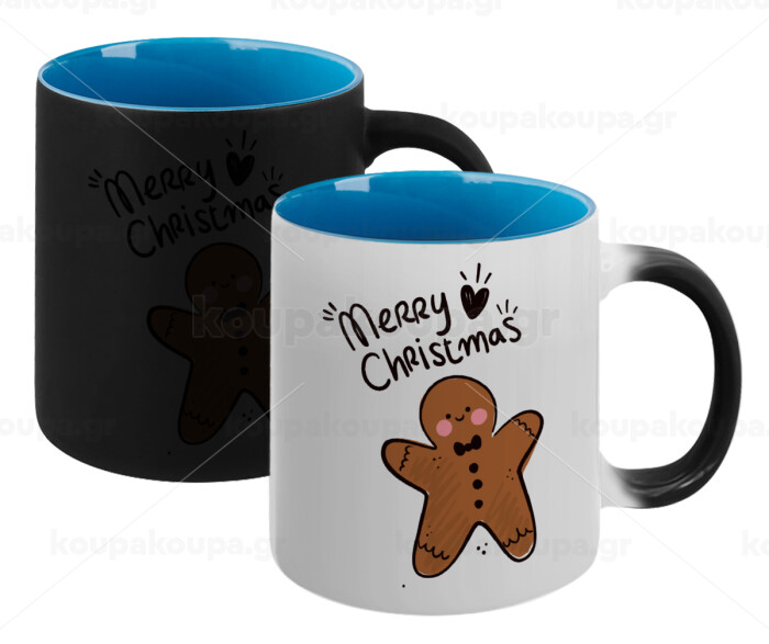 mr gingerbread, Κούπα Μαγική εσωτερικό μπλε, κεραμική 330ml που αλλάζει χρώμα με το ζεστό ρόφημα