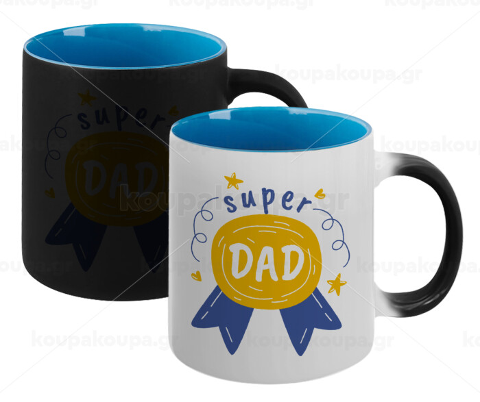 Μπαμπά είσαι για μετάλλιο, Κούπα Μαγική εσωτερικό μπλε, κεραμική 330ml που αλλάζει χρώμα με το ζεστό ρόφημα