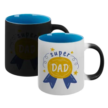 Μπαμπά είσαι για μετάλλιο, Κούπα Μαγική εσωτερικό μπλε, κεραμική 330ml που αλλάζει χρώμα με το ζεστό ρόφημα