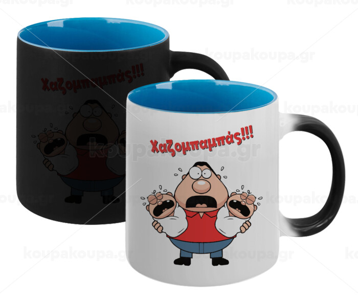 Χαζομπαμπάς σε απόγνωση, Κούπα Μαγική εσωτερικό μπλε, κεραμική 330ml που αλλάζει χρώμα με το ζεστό ρόφημα