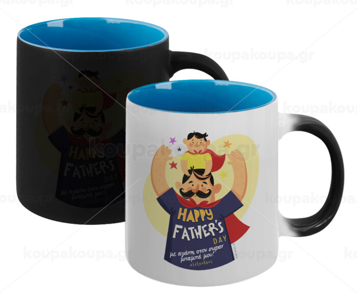Happy Fathers Day με όνομα, Κούπα Μαγική εσωτερικό μπλε, κεραμική 330ml που αλλάζει χρώμα με το ζεστό ρόφημα