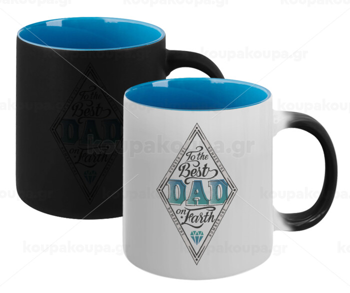 To the best DAD on earth, Κούπα Μαγική εσωτερικό μπλε, κεραμική 330ml που αλλάζει χρώμα με το ζεστό ρόφημα