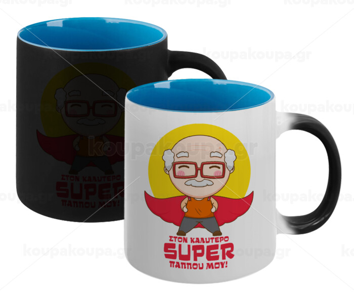 To my best Super Grandpa!, Κούπα Μαγική εσωτερικό μπλε, κεραμική 330ml που αλλάζει χρώμα με το ζεστό ρόφημα
