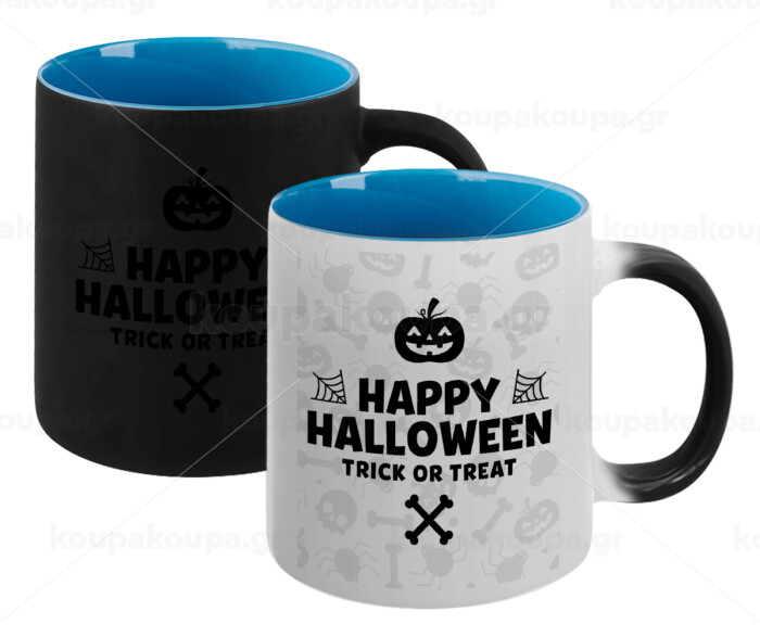 Happy Halloween pumpkin, Κούπα Μαγική εσωτερικό μπλε, κεραμική 330ml που αλλάζει χρώμα με το ζεστό ρόφημα