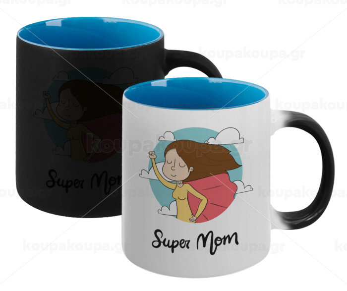 Super mom, Κούπα Μαγική εσωτερικό μπλε, κεραμική 330ml που αλλάζει χρώμα με το ζεστό ρόφημα