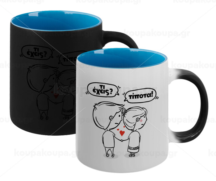 Τι έχεις? Τίποτα!, Κούπα Μαγική εσωτερικό μπλε, κεραμική 330ml που αλλάζει χρώμα με το ζεστό ρόφημα