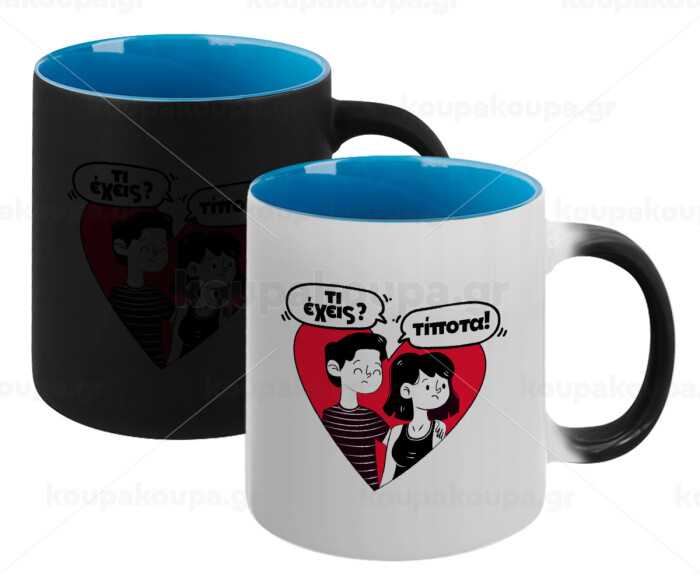 Τι έχεις? Τίποτα!, Κούπα Μαγική εσωτερικό μπλε, κεραμική 330ml που αλλάζει χρώμα με το ζεστό ρόφημα