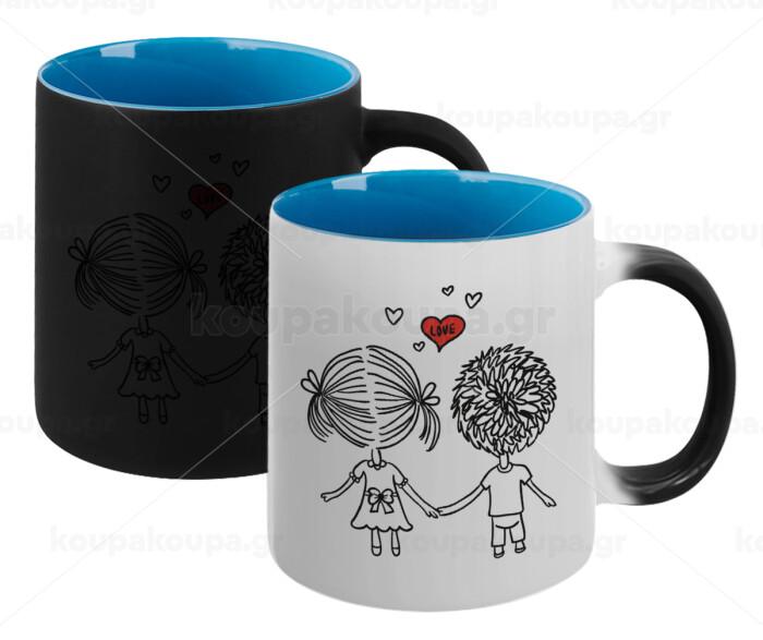 Hold my hand for ever, Κούπα Μαγική εσωτερικό μπλε, κεραμική 330ml που αλλάζει χρώμα με το ζεστό ρόφημα