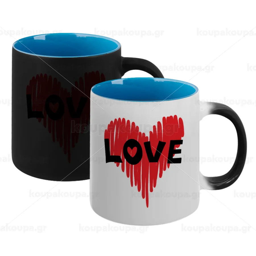 I Love You red heart, Κούπα Μαγική εσωτερικό μπλε, κεραμική 330ml που αλλάζει χρώμα με το ζεστό ρόφημα