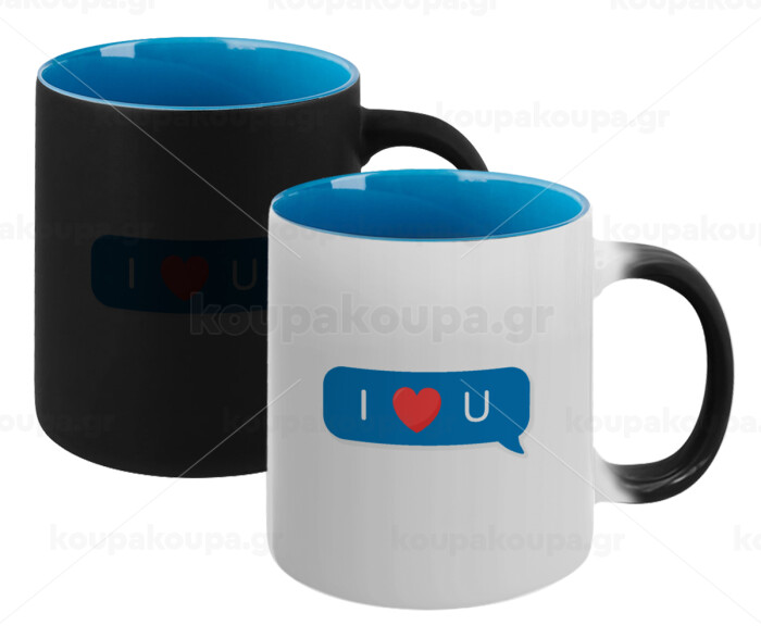 I Love You text message, Κούπα Μαγική εσωτερικό μπλε, κεραμική 330ml που αλλάζει χρώμα με το ζεστό ρόφημα