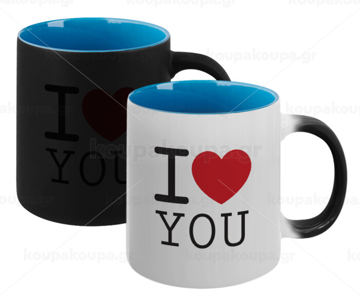 I Love you classic, Κούπα Μαγική εσωτερικό μπλε, κεραμική 330ml που αλλάζει χρώμα με το ζεστό ρόφημα