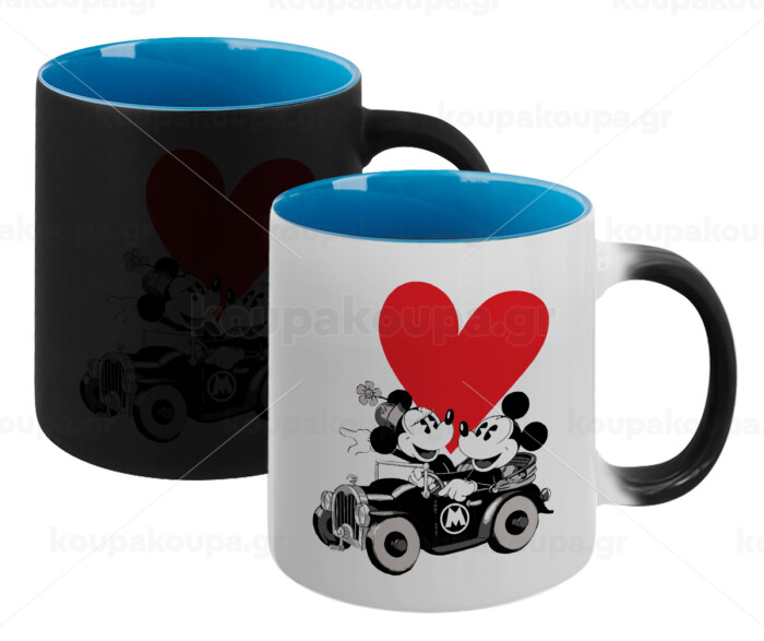 Mickey & Minnie love car, Κούπα Μαγική εσωτερικό μπλε, κεραμική 330ml που αλλάζει χρώμα με το ζεστό ρόφημα