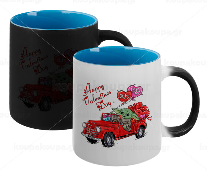 Yoda, happy valentines day (xoxo), Κούπα Μαγική εσωτερικό μπλε, κεραμική 330ml που αλλάζει χρώμα με το ζεστό ρόφημα