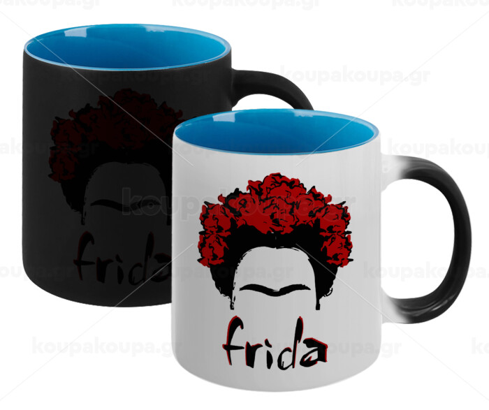 Frida, Κούπα Μαγική εσωτερικό μπλε, κεραμική 330ml που αλλάζει χρώμα με το ζεστό ρόφημα