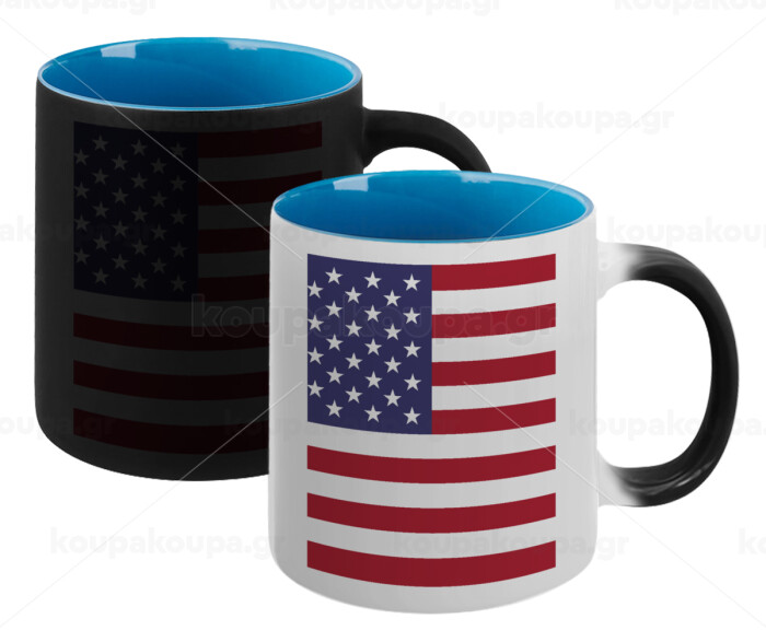 USA Flag, Κούπα Μαγική εσωτερικό μπλε, κεραμική 330ml που αλλάζει χρώμα με το ζεστό ρόφημα