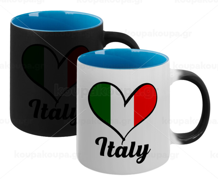 Italy flag, Κούπα Μαγική εσωτερικό μπλε, κεραμική 330ml που αλλάζει χρώμα με το ζεστό ρόφημα
