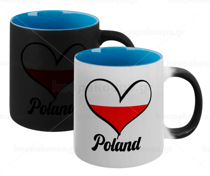 Poland flag, Κούπα Μαγική εσωτερικό μπλε, κεραμική 330ml που αλλάζει χρώμα με το ζεστό ρόφημα