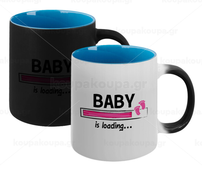 Baby is Loading GIRL, Κούπα Μαγική εσωτερικό μπλε, κεραμική 330ml που αλλάζει χρώμα με το ζεστό ρόφημα