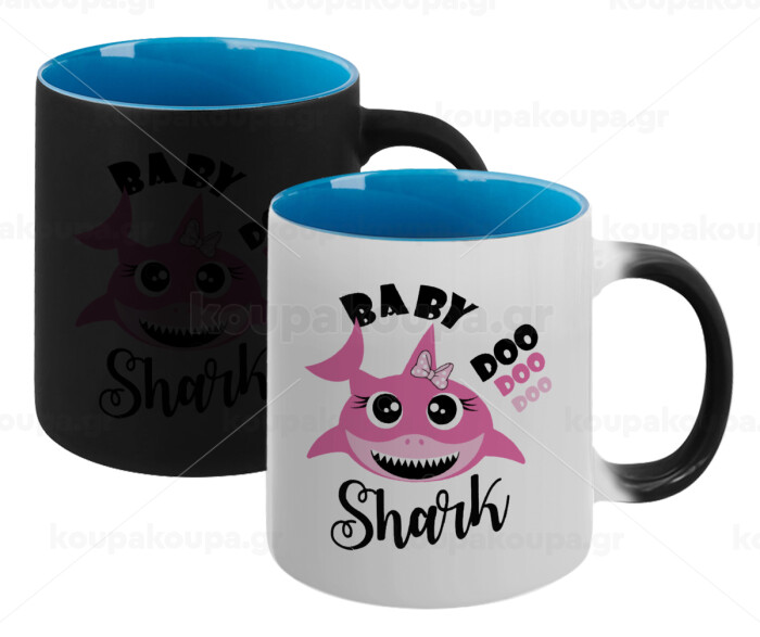 Baby Shark (girl), Κούπα Μαγική εσωτερικό μπλε, κεραμική 330ml που αλλάζει χρώμα με το ζεστό ρόφημα