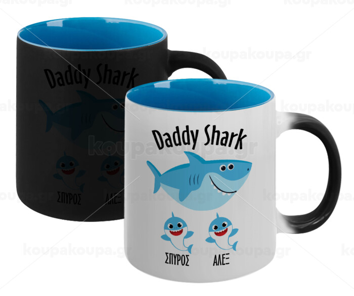 Daddy Shark (με ονόματα παιδικά), Κούπα Μαγική εσωτερικό μπλε, κεραμική 330ml που αλλάζει χρώμα με το ζεστό ρόφημα