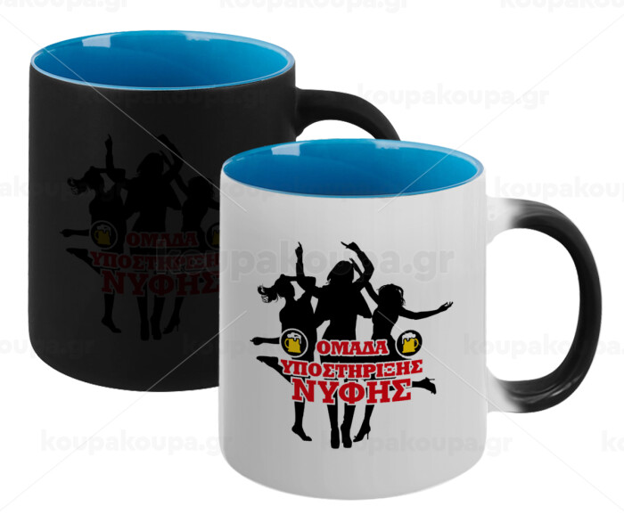 Bachelor Ομάδα υποστήριξης Νύφης, Κούπα Μαγική εσωτερικό μπλε, κεραμική 330ml που αλλάζει χρώμα με το ζεστό ρόφημα