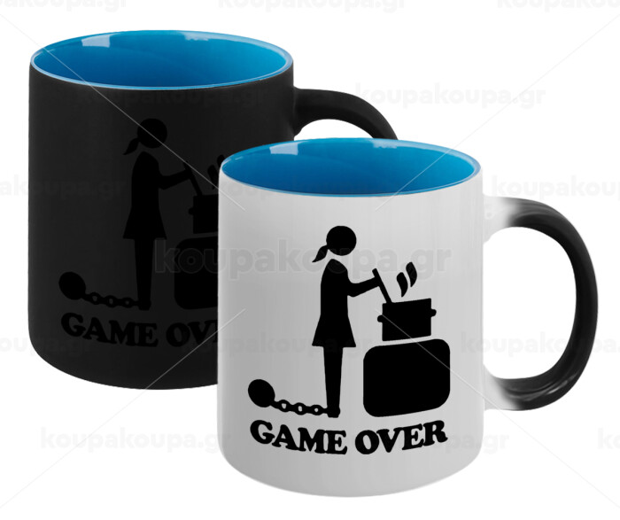 Woman Game Over, Κούπα Μαγική εσωτερικό μπλε, κεραμική 330ml που αλλάζει χρώμα με το ζεστό ρόφημα
