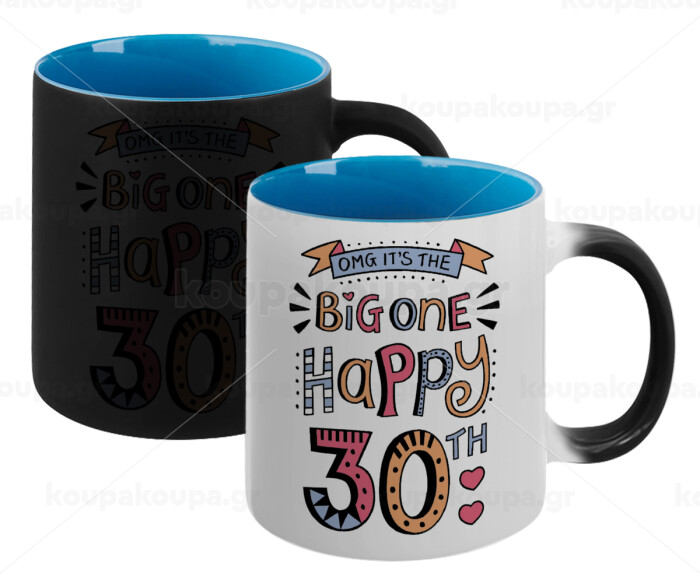 Big one Happy 30th, Κούπα Μαγική εσωτερικό μπλε, κεραμική 330ml που αλλάζει χρώμα με το ζεστό ρόφημα
