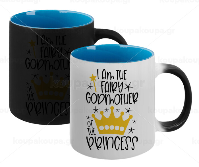 I am the fairy Godmother of the Princess, Κούπα Μαγική εσωτερικό μπλε, κεραμική 330ml που αλλάζει χρώμα με το ζεστό ρόφημα