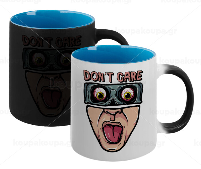 Don't Care, Κούπα Μαγική εσωτερικό μπλε, κεραμική 330ml που αλλάζει χρώμα με το ζεστό ρόφημα
