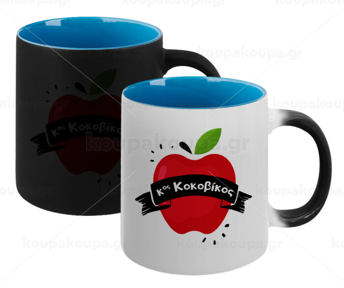Αναμνηστικό Δώρο Δασκάλου Κόκκινο Μήλο, Κούπα Μαγική εσωτερικό μπλε, κεραμική 330ml που αλλάζει χρώμα με το ζεστό ρόφημα