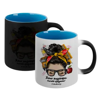 Στην καλύτερη συνοδό σχολικού!, Κούπα Μαγική εσωτερικό μπλε, κεραμική 330ml που αλλάζει χρώμα με το ζεστό ρόφημα