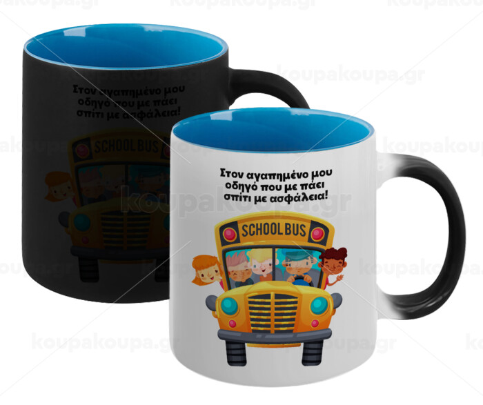 Στον αγαπημένο μου οδηγό που με πάει σπίτι με ασφάλεια!, Κούπα Μαγική εσωτερικό μπλε, κεραμική 330ml που αλλάζει χρώμα με το ζεστό ρόφημα