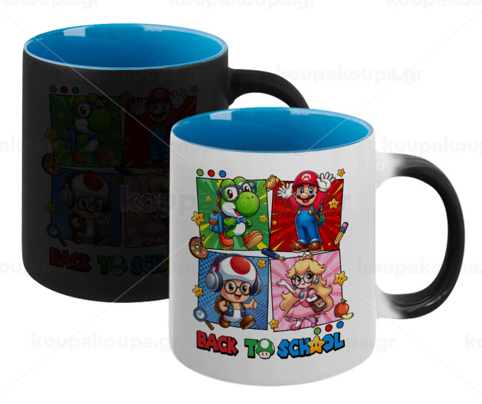 Back to the School Mario & Friends, Κούπα Μαγική εσωτερικό μπλε, κεραμική 330ml που αλλάζει χρώμα με το ζεστό ρόφημα