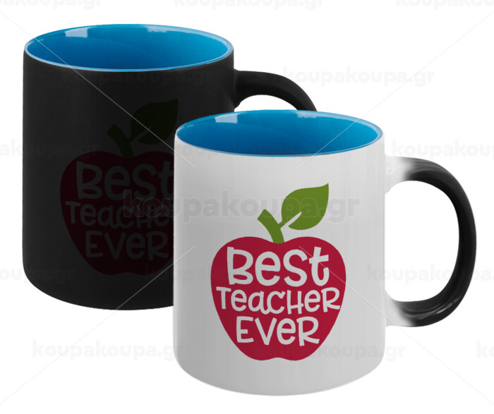 best teacher ever, apple!, Κούπα Μαγική εσωτερικό μπλε, κεραμική 330ml που αλλάζει χρώμα με το ζεστό ρόφημα