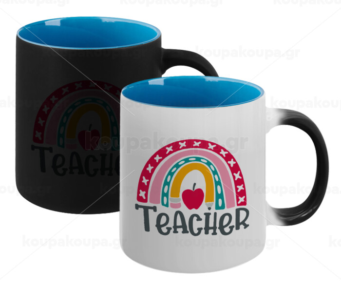 Rainbow teacher, Κούπα Μαγική εσωτερικό μπλε, κεραμική 330ml που αλλάζει χρώμα με το ζεστό ρόφημα