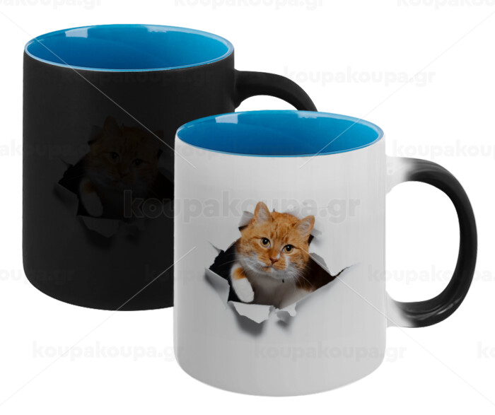 Cat cracked, Κούπα Μαγική εσωτερικό μπλε, κεραμική 330ml που αλλάζει χρώμα με το ζεστό ρόφημα