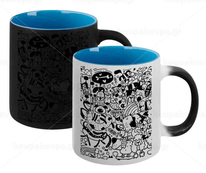 DOG pattern, Κούπα Μαγική εσωτερικό μπλε, κεραμική 330ml που αλλάζει χρώμα με το ζεστό ρόφημα