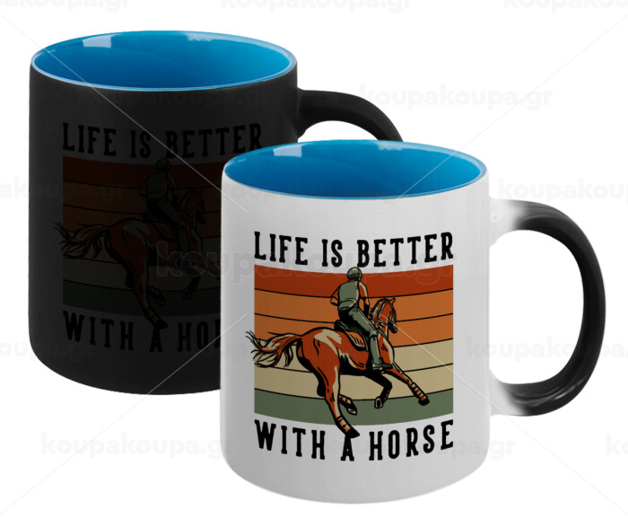 Life is Better with a Horse, Κούπα Μαγική εσωτερικό μπλε, κεραμική 330ml που αλλάζει χρώμα με το ζεστό ρόφημα