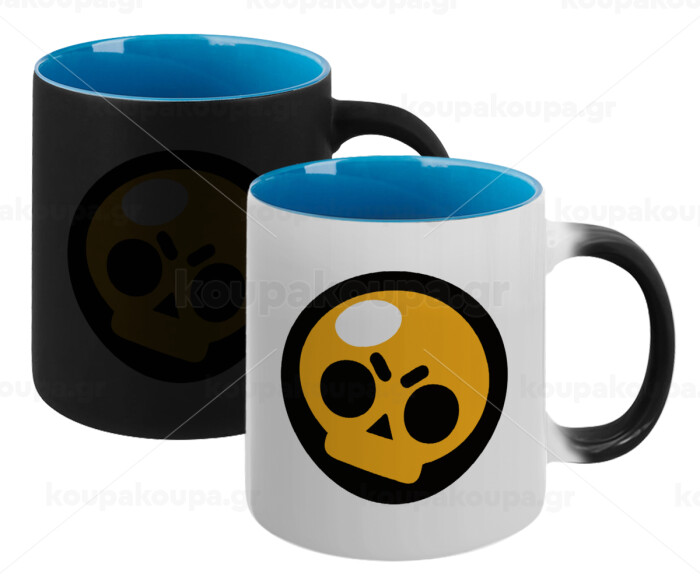 Brawl Stars Skull, Κούπα Μαγική εσωτερικό μπλε, κεραμική 330ml που αλλάζει χρώμα με το ζεστό ρόφημα
