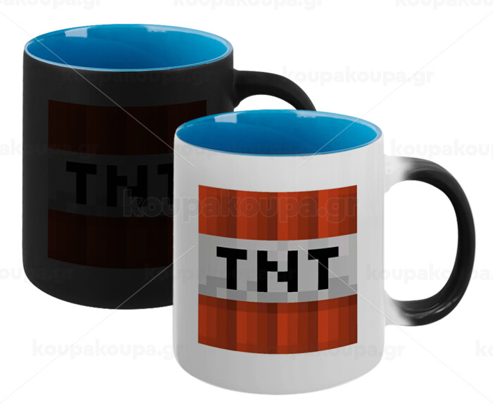 Minecraft TNT, Κούπα Μαγική εσωτερικό μπλε, κεραμική 330ml που αλλάζει χρώμα με το ζεστό ρόφημα
