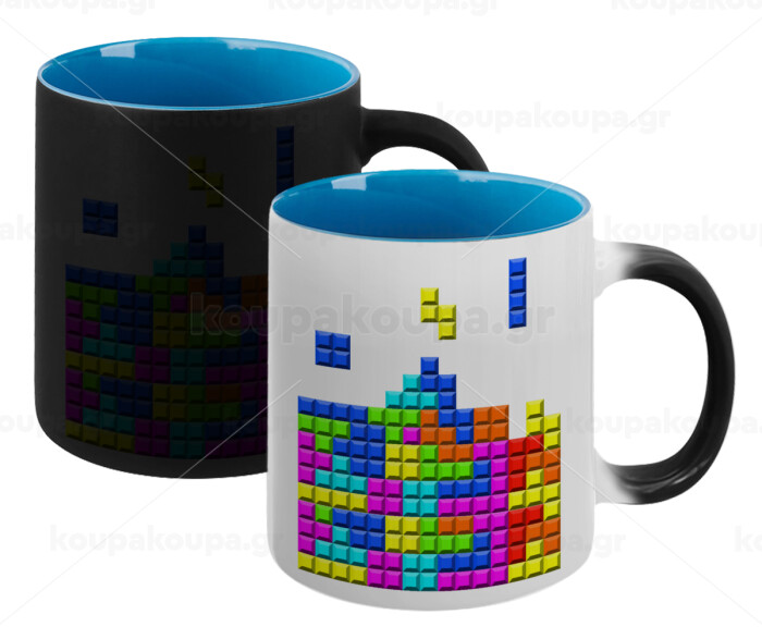 Tetris blocks, Κούπα Μαγική εσωτερικό μπλε, κεραμική 330ml που αλλάζει χρώμα με το ζεστό ρόφημα