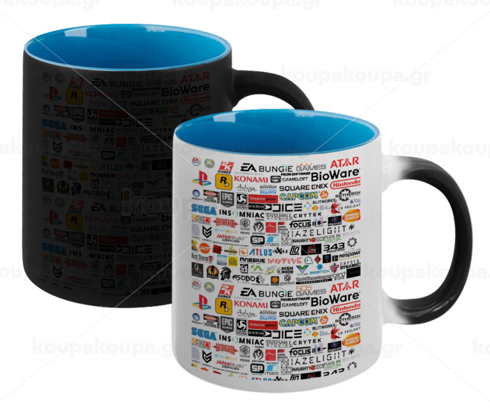 Video Game Studio Logos, Κούπα Μαγική εσωτερικό μπλε, κεραμική 330ml που αλλάζει χρώμα με το ζεστό ρόφημα