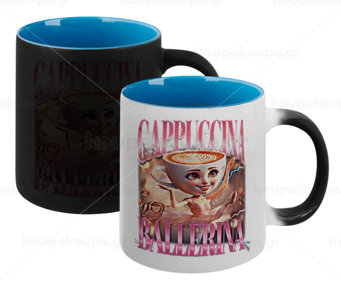 BALLERINA CAPUCHINA FUNK, Κούπα Μαγική εσωτερικό μπλε, κεραμική 330ml που αλλάζει χρώμα με το ζεστό ρόφημα