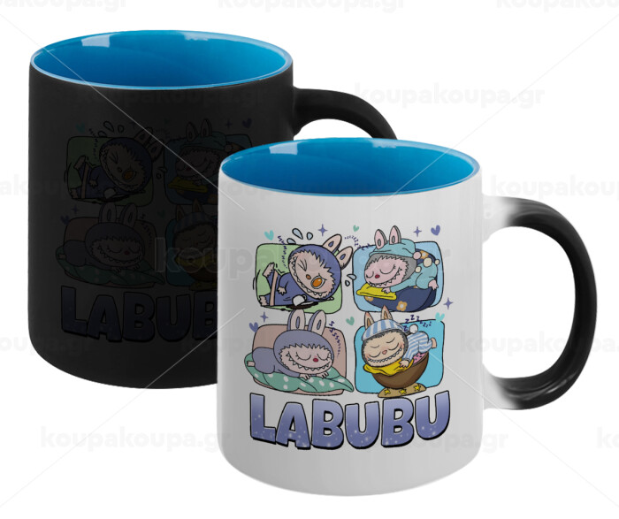 Labubu, Κούπα Μαγική εσωτερικό μπλε, κεραμική 330ml που αλλάζει χρώμα με το ζεστό ρόφημα